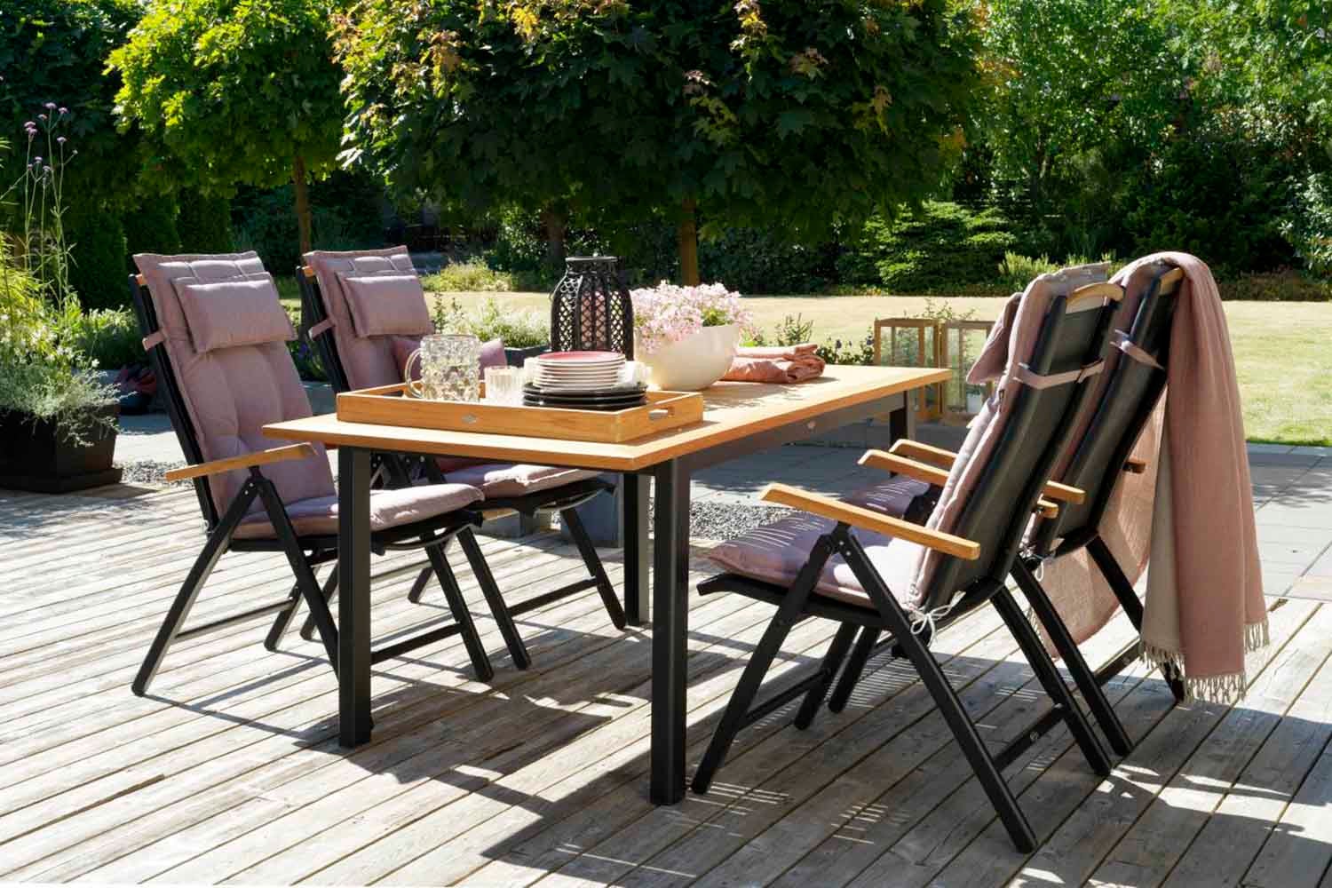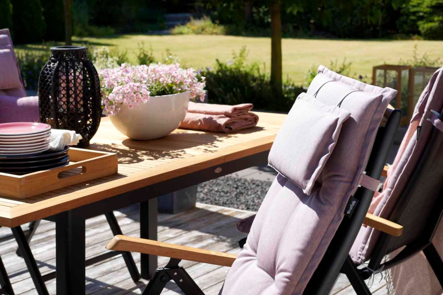 Our adjustable chair Andy remains as one of our most popular chairs. At Brafab we are proud that we were there from the very beginning, and that “we have the original!”. Frame made of aluminum, and seat and back in textilene, now also with details in teak or nonwood. Andy can be matched with our tables of different sizes and materials.