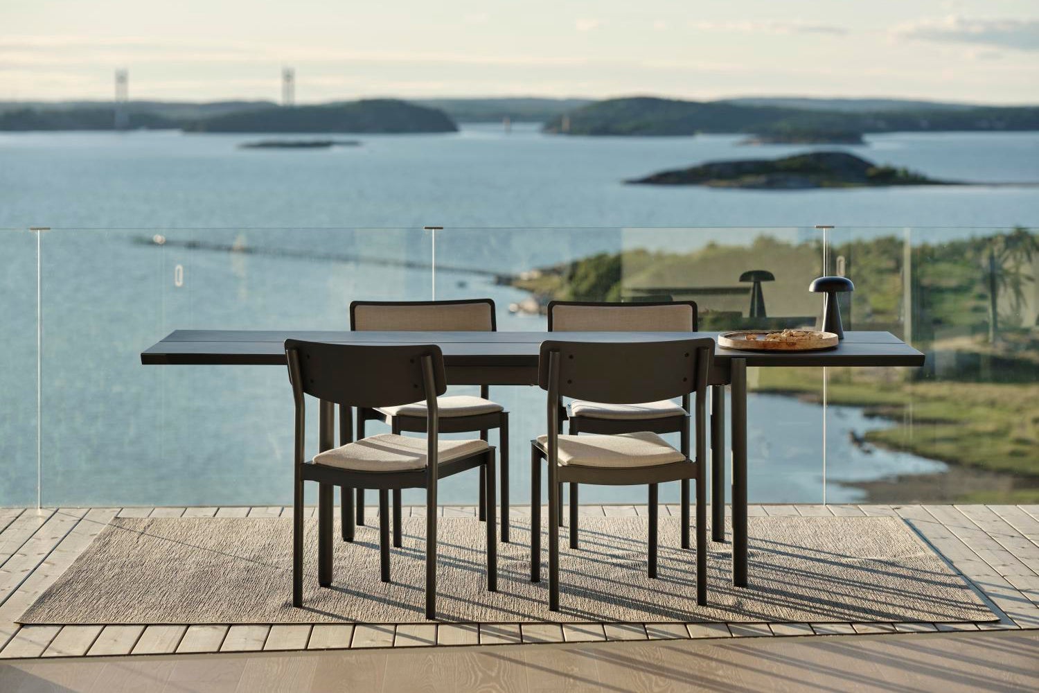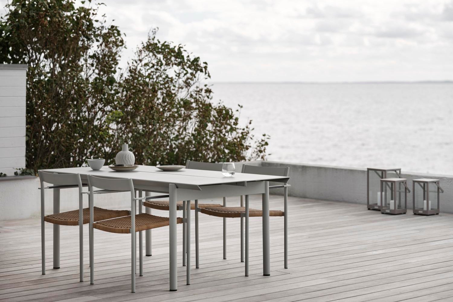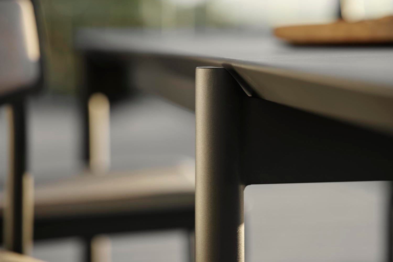 Completely in aluminium, the table B45 gives a modern feel, austere but at the same time inviting and with room for many. Thanks to sound-absorbing paint on the underside of the table, the clatter from glass and porcelain is dampened. B45 is available in two lengths (180 and 250 centimeters respectively), where a design detail is that the distance between the table legs is the same. The edges of the tabletop have an elegant 45-degree angle, a detail that catches the eye. Available in two colors.