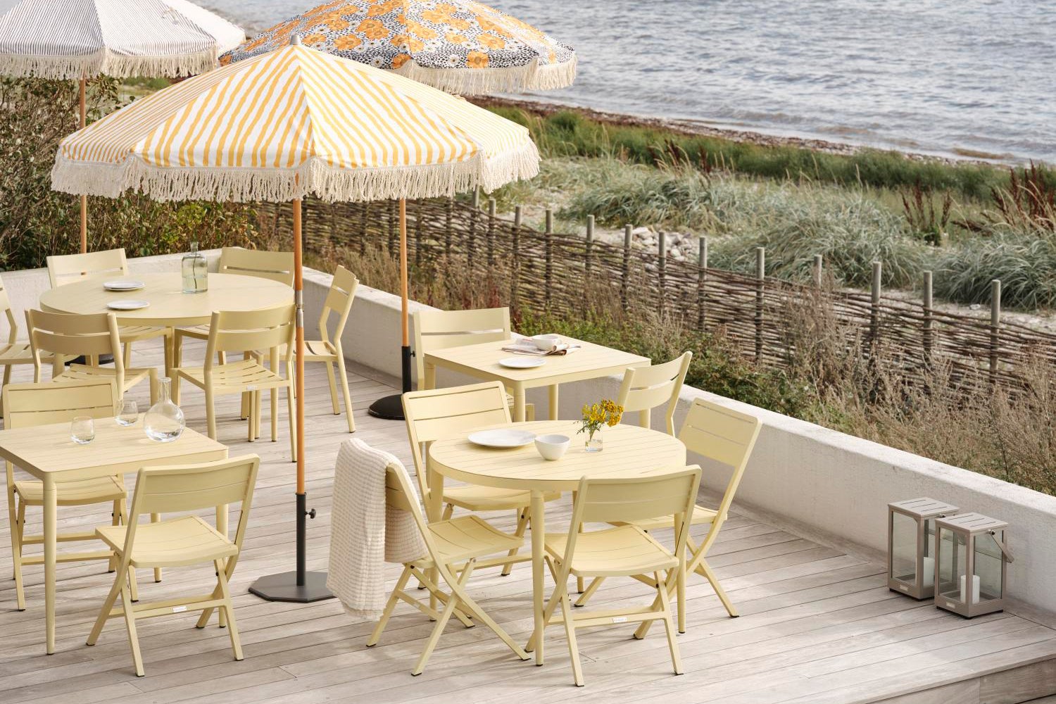 Bigby, the best of Scandinavian design, a combination of big city vibes and a summer feeling. Made in aluminum and designed with elegant lines and well-thought-out details – including the tapered legs and stylish table top with ribs. The summery colors also give the extra boost to the feeling.