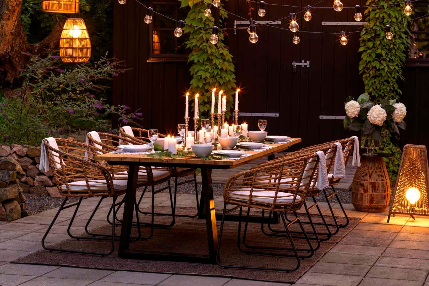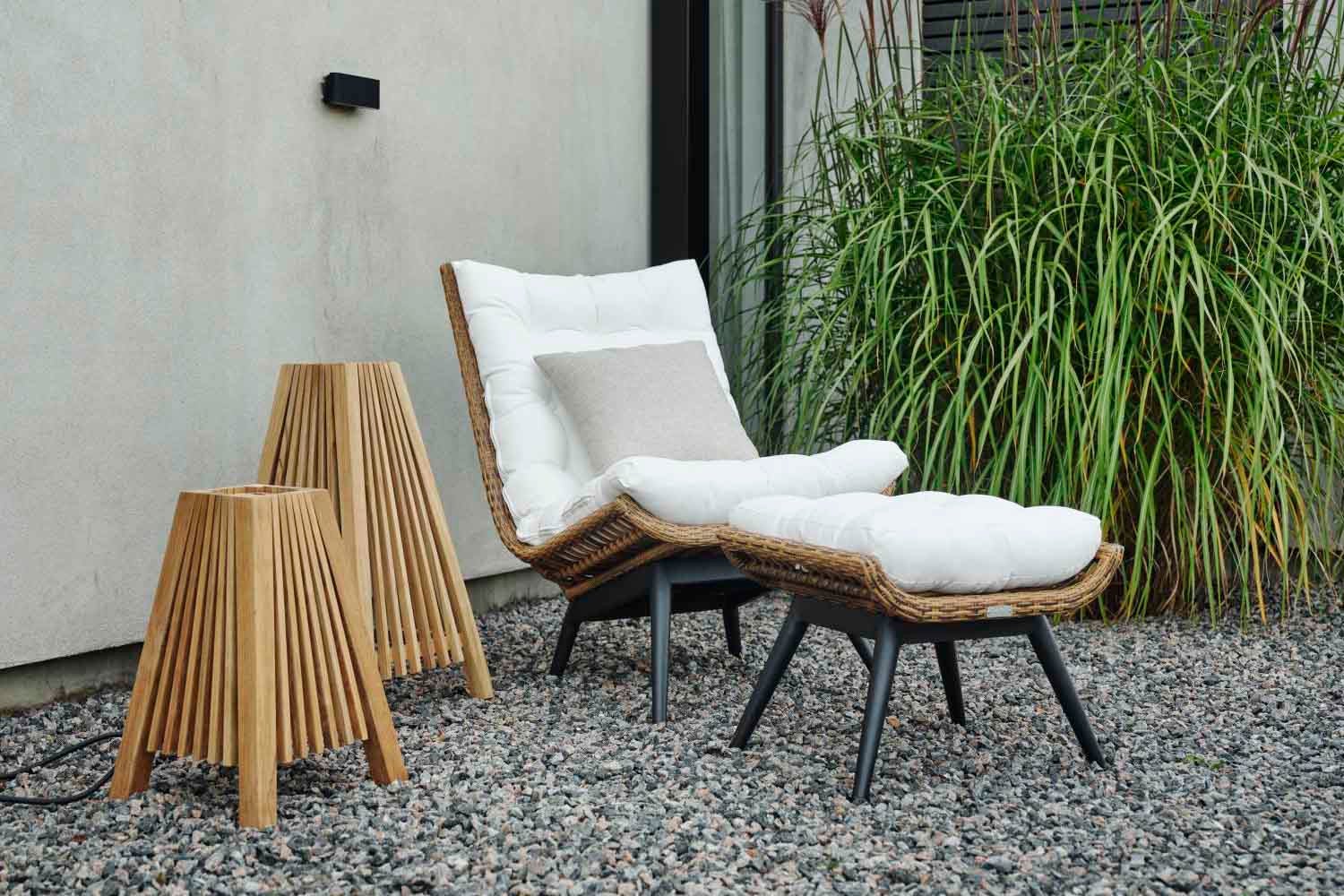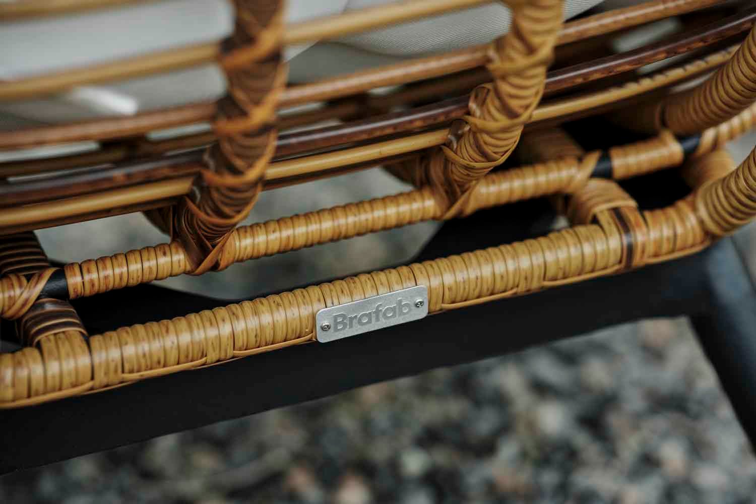 The airy, wickerwork design is made of durable, coarse artificial rattan with a very natural appearance. Excellent seating comfort and high arms create an extra snug feeling.