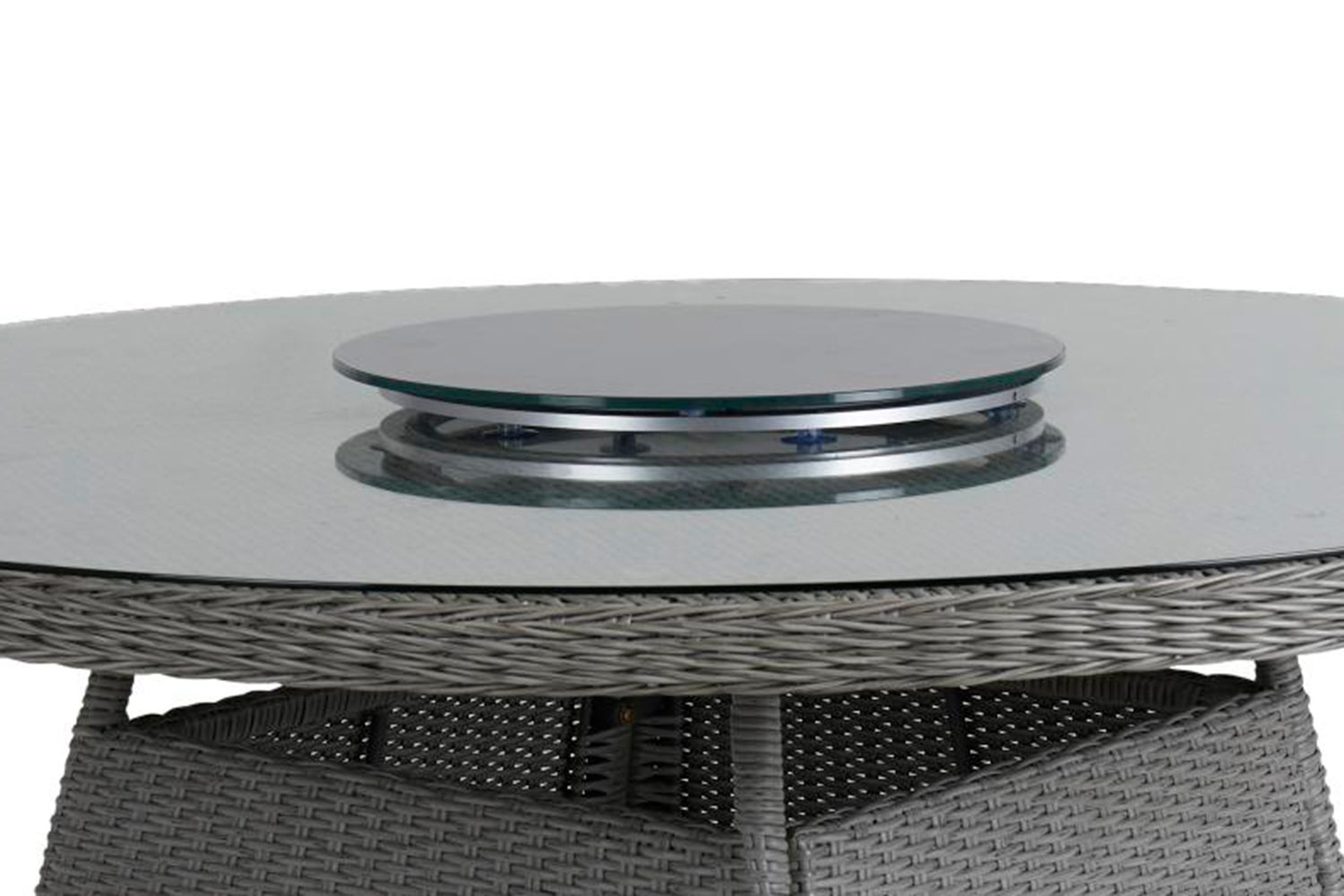 Practical universal Lazy Susan (swiwel tray) in aluminum and tempered glass.