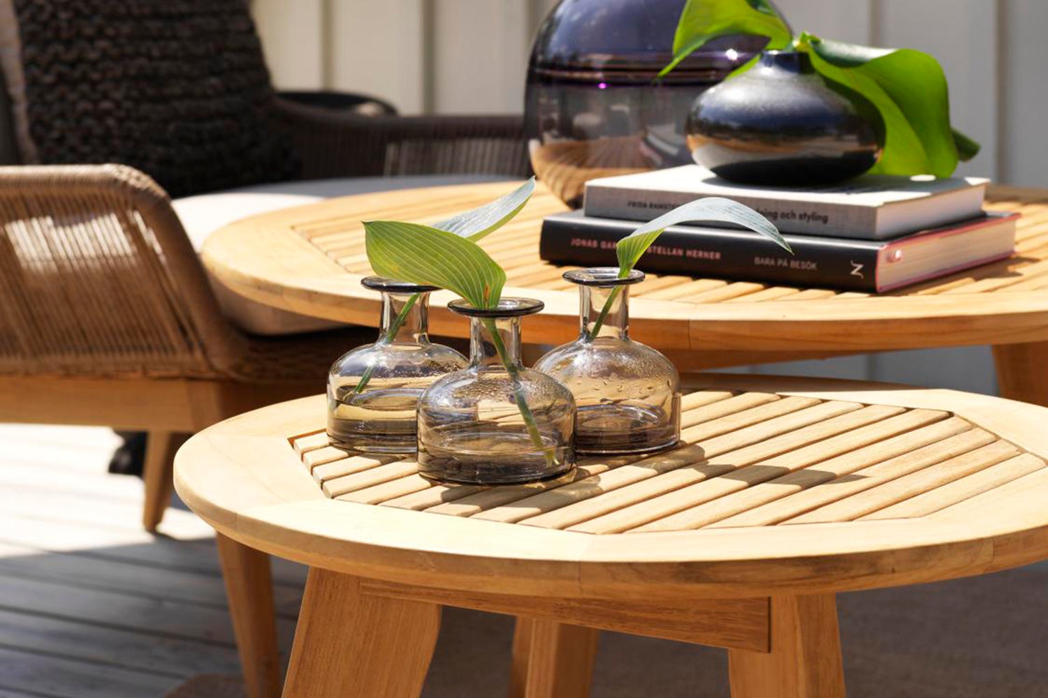 Kastos are beautiful, easy-to-place coffee tables in natural teak that do great together that are available in two different versions. Be flexible and furnish the modern way - push the small, lower table some way under the larger one! The tables also goes very well indoors.