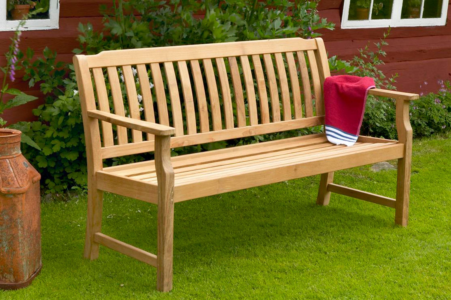 Stable sofa in first class teak that is perfect as a solitary in the garden.
