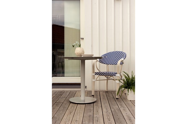 A colourful and durable chair series, created for cafés, bistros and outdoor cafés. With a classic woven seat and back, the Parterre captures the Parisian feeling in a modern twist. The chair has a lightweight aluminium frame, is stackable and designed to withstand daily use in public environments. The series is available in several colours and patterns.