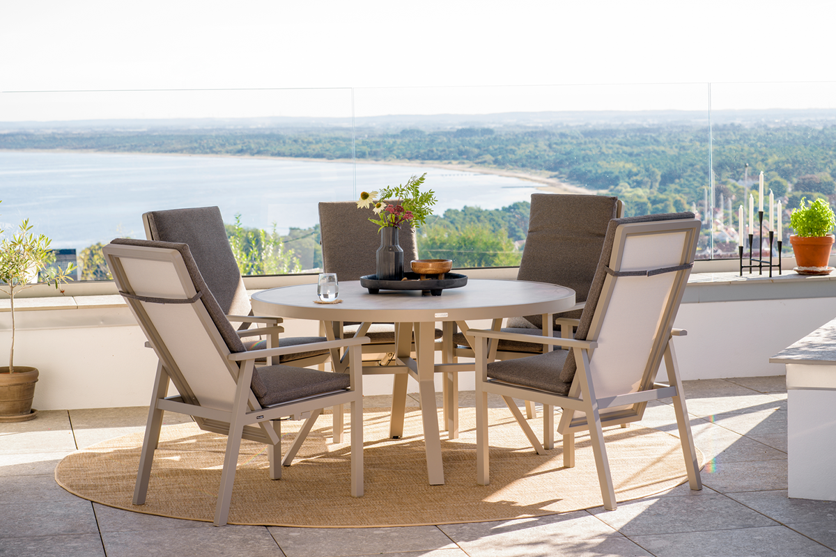 A modern yet classic series in aluminium that offers an array of possible combinations. The soft, curved contours create a pleasant and inviting feel in this new series, with a focus on the details. Available with a frame in white, grey or khaki aluminium.