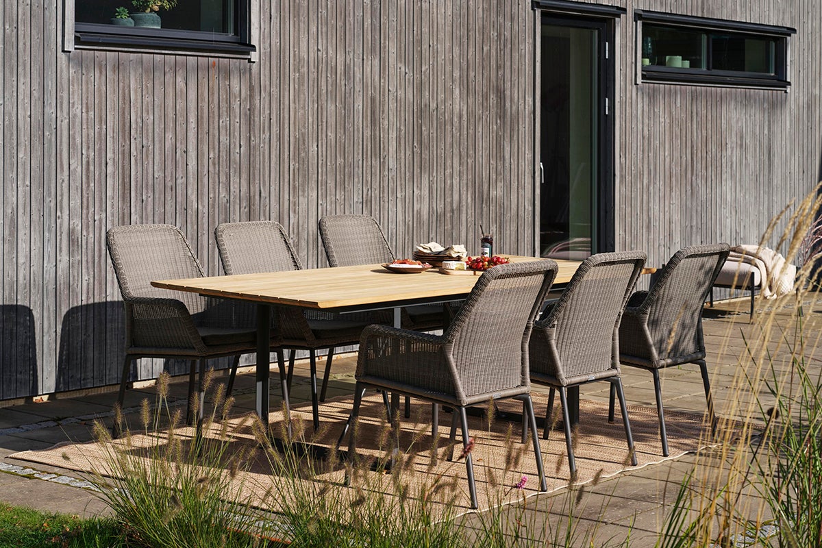 Shad is an elegant table crafted from classic teak slats on a sleek, coated aluminum frame. It’s large enough to accommodate many guests while still being perfectly suited for intimate dinners. Versatile in design, Shad can be paired with various chairs from Brafab, allowing you to choose the style that best suits your preferences.