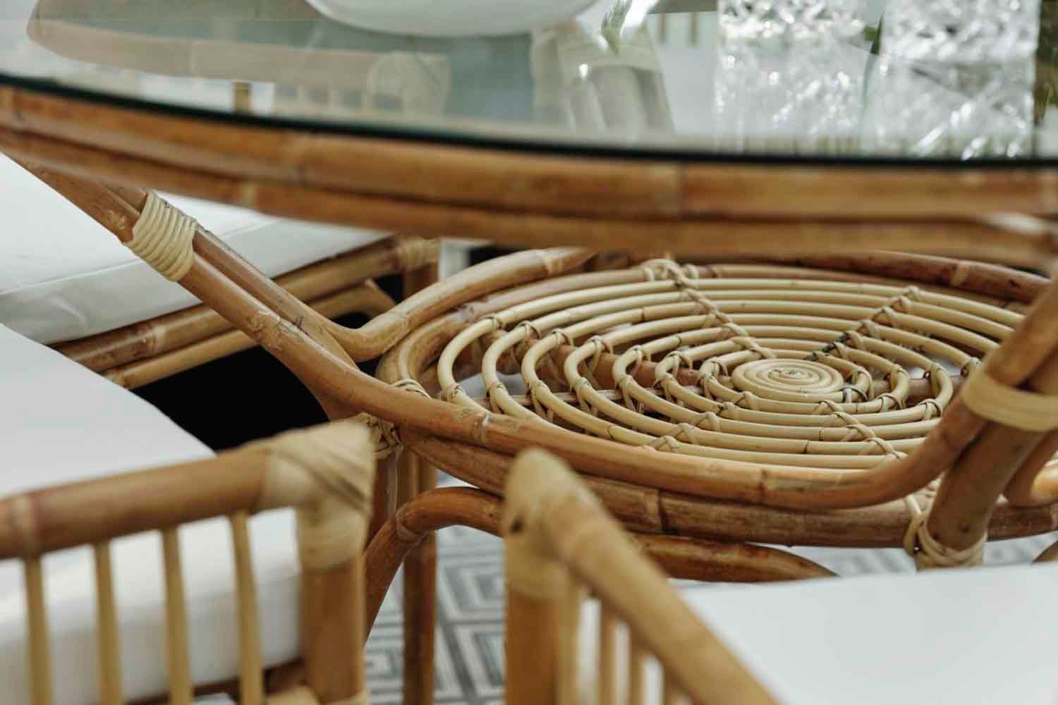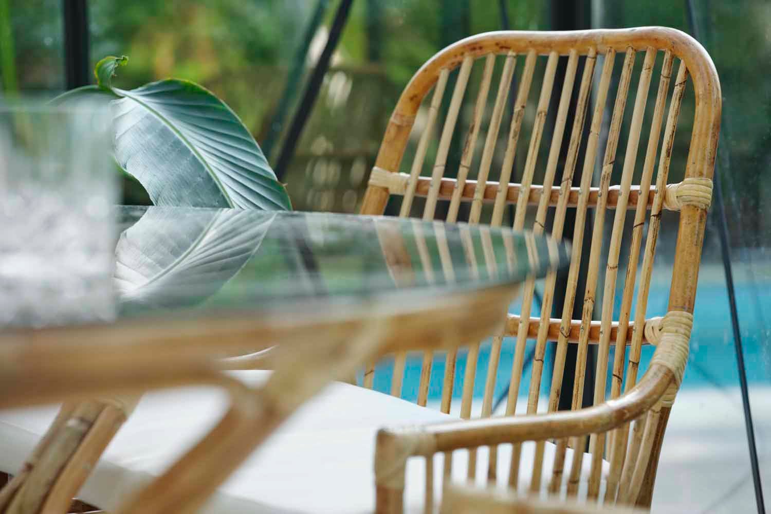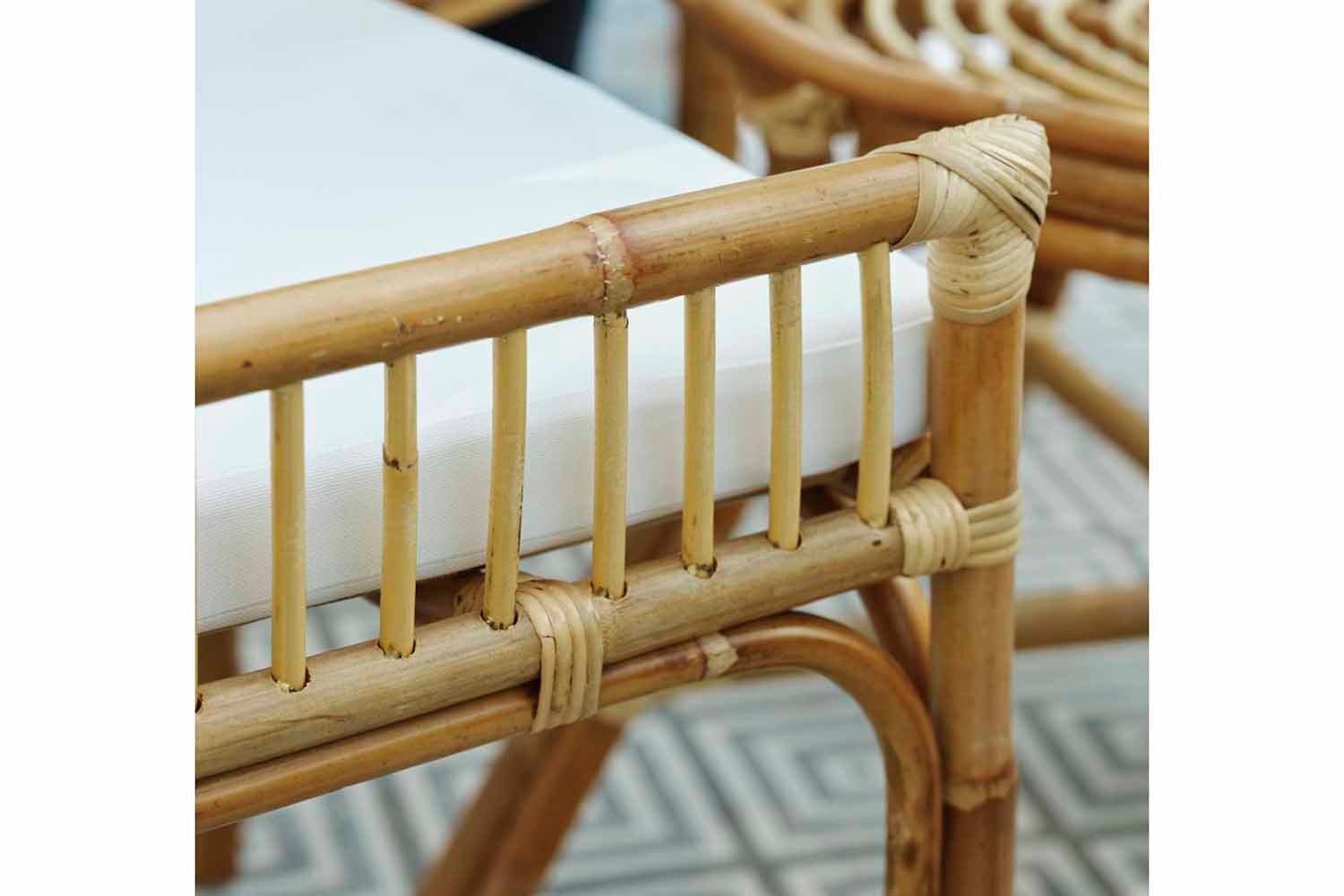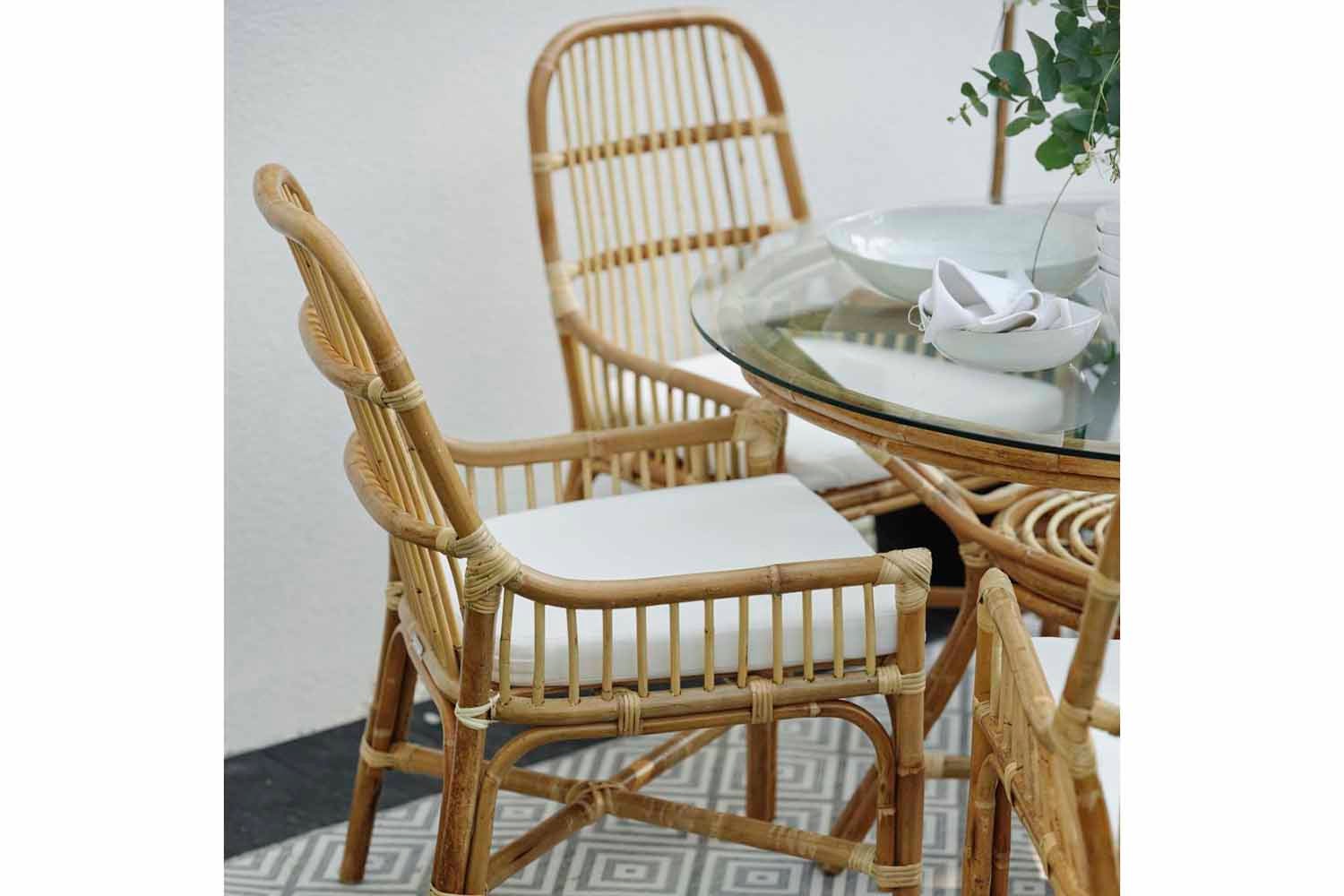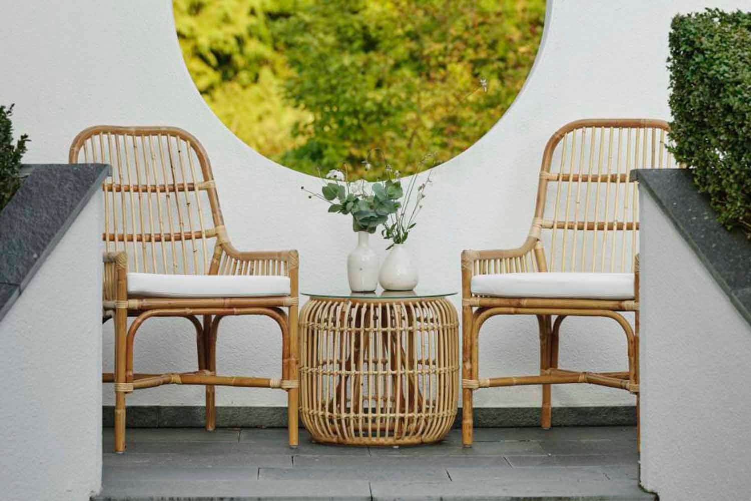 Vallda is a series of chairs, tables and a hanging swing in natural rattan with fine details. Natural rattan is braided rattan where the skin has been retained, which gives a more natural color and natural irregularities. Rattan furniture should be placed under a roof.