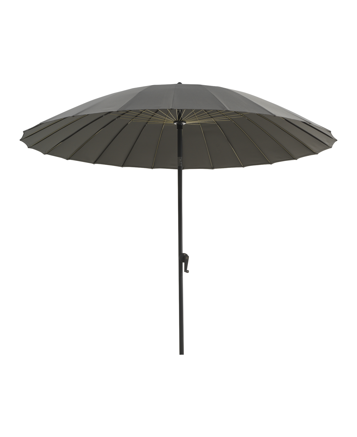 Shanghai is a modern parasol with a generous size and 50+ UPF protection against the sun's ultraviolet radiation. 2.7 meters in diameter creates protection from the sun where it is needed. The parasol has a solid crank and pole that can be tilted, making it easy to reach cooling shade. When it is angled, the many and beautiful steel ribs become visible - form and function in harmony. This parasol adds both style and function to your patio. Overall, all the features needed for a classic Shanghai parasol.
