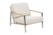 A beautiful armchair that feels truly modern with its stainless steel frame. Nice and deep, with a comfortable angle – you can relax in style here. The details make the whole – and the teak elements of the armrests elevate the carefully considered feel. The low seat height enhances the feeling of modern lounge style and comfortable cushions of high-density foam with upholstery of lined olefin fabric that makes them water-repellent. This is a sitting area with nice details and angles.