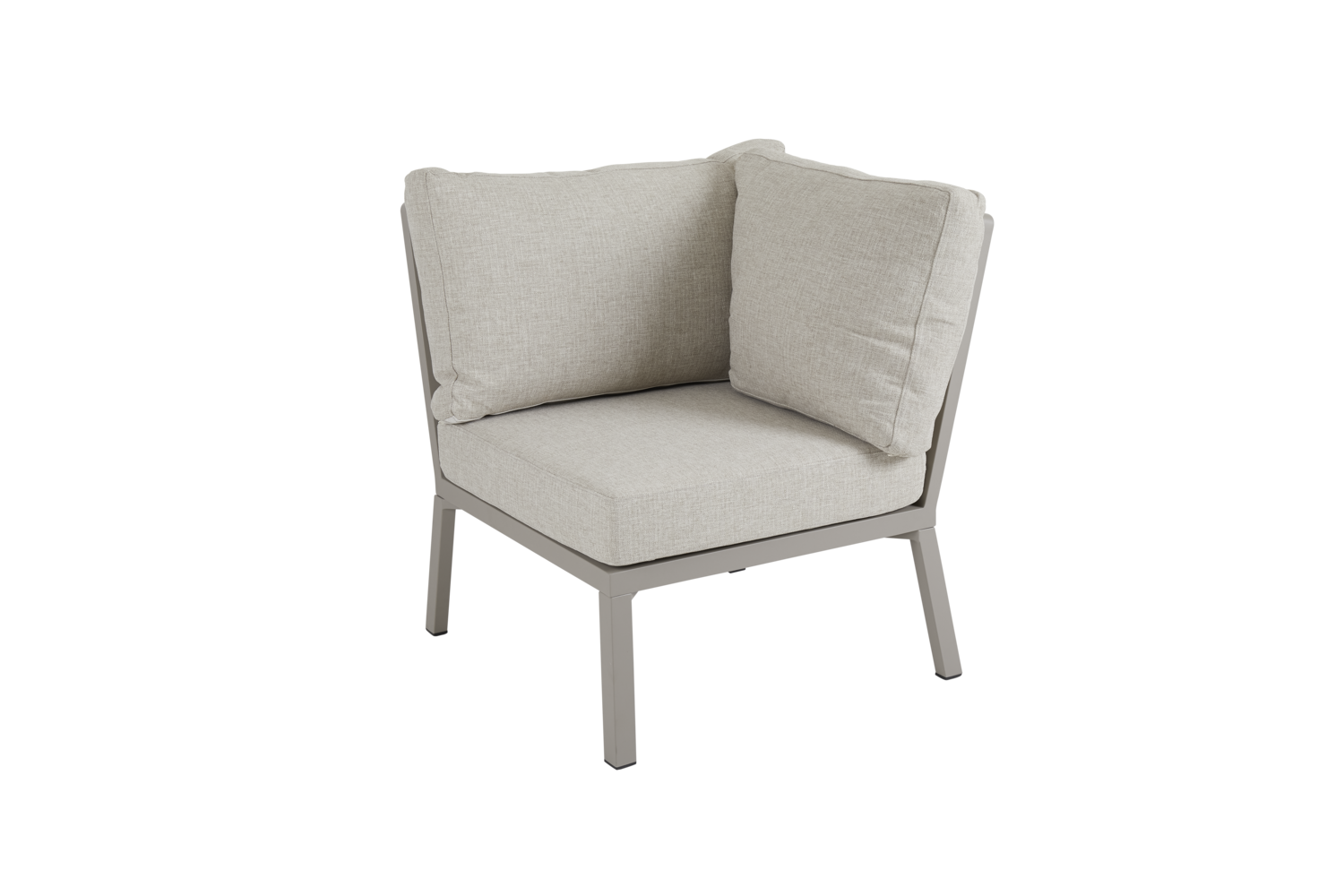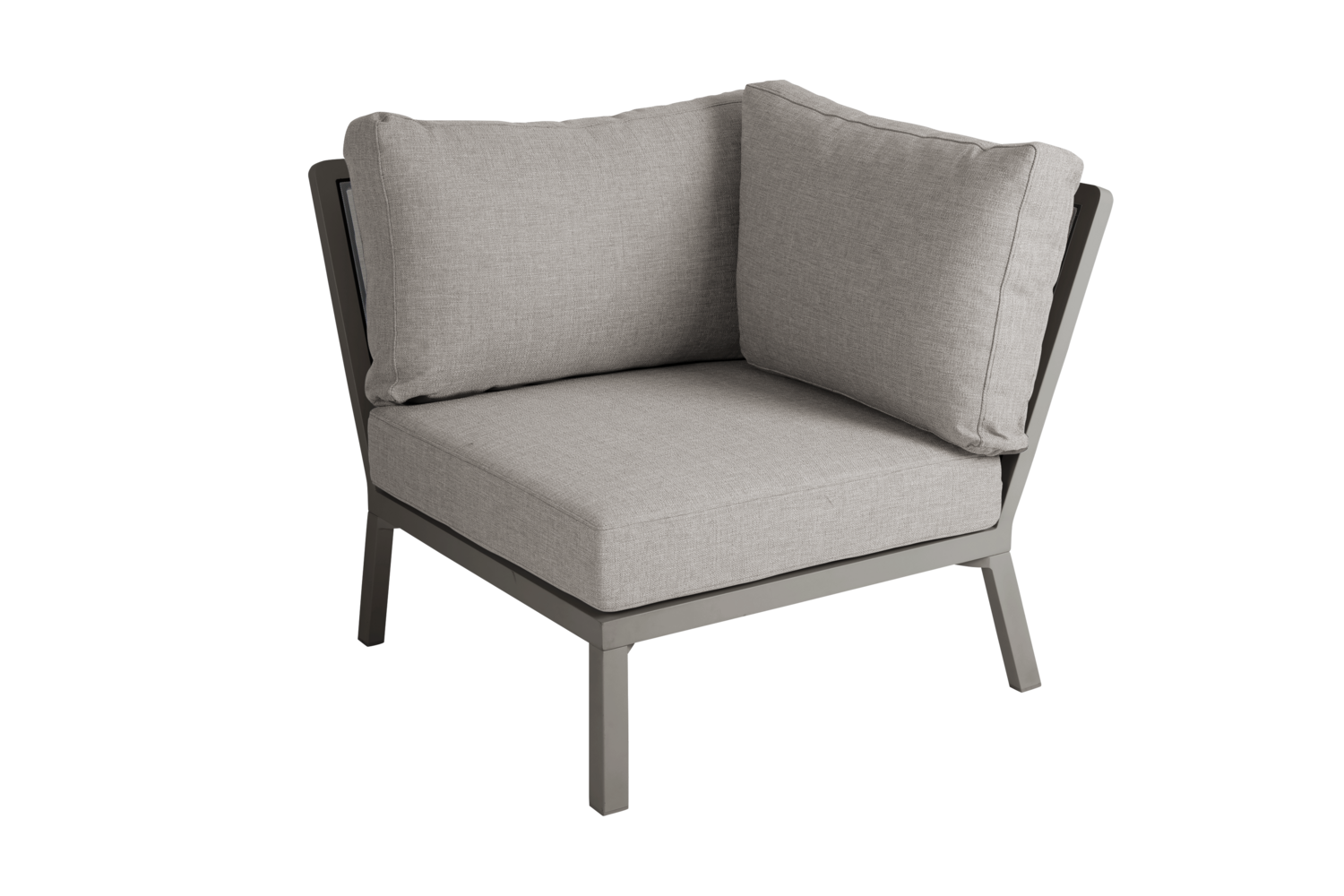 The popular Samvaro series has now been expanded with many new lounge components, for even more combination possibilities. This corner piece has comfortable olefin fabric cushions with a water-repellent lining. The slightly lower height is perfect for relaxing and enjoying coffee. Available in two colour combinations.