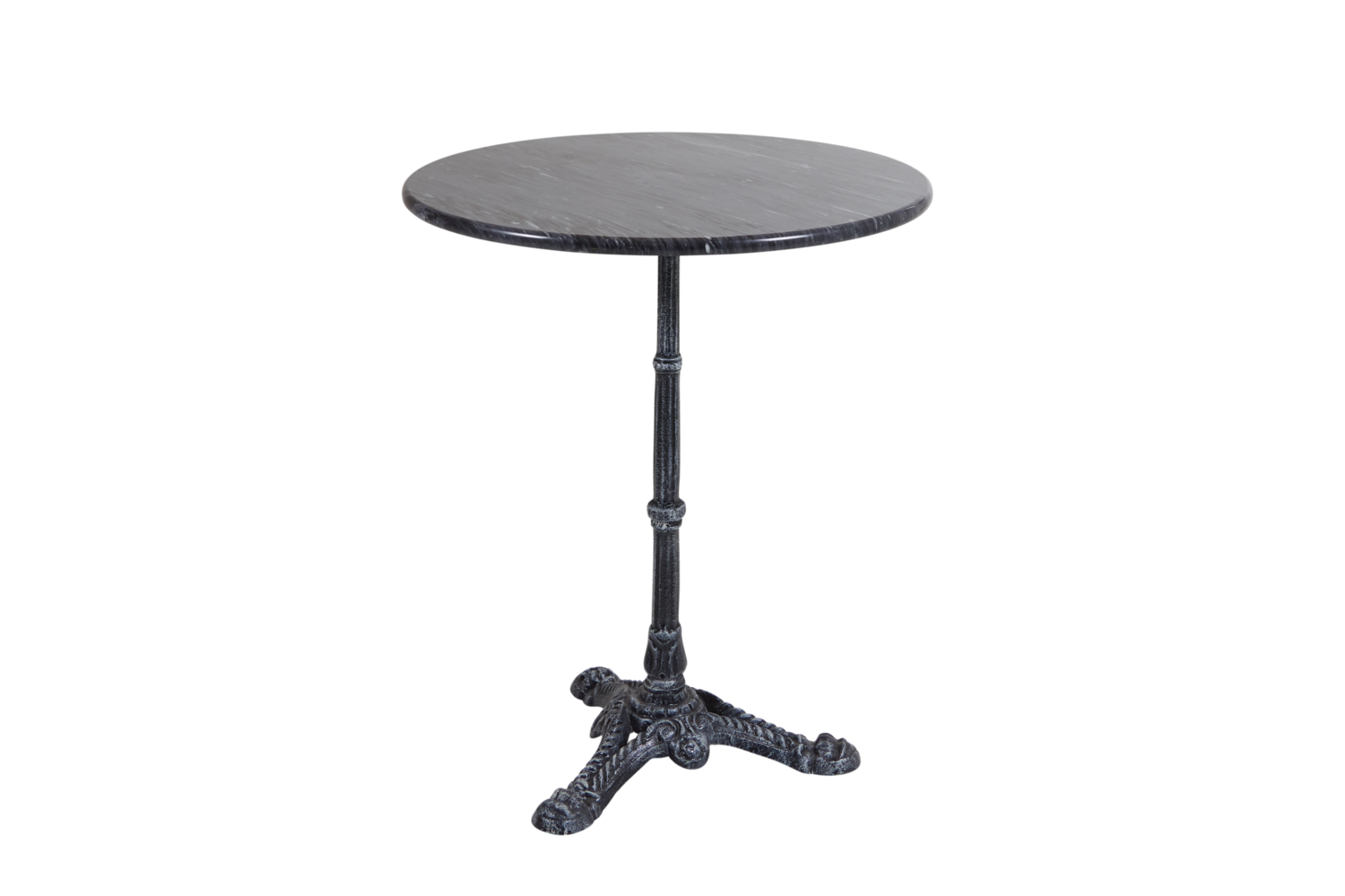 Marble table with a tableframe of cast iron and either black or white marble tabletop.